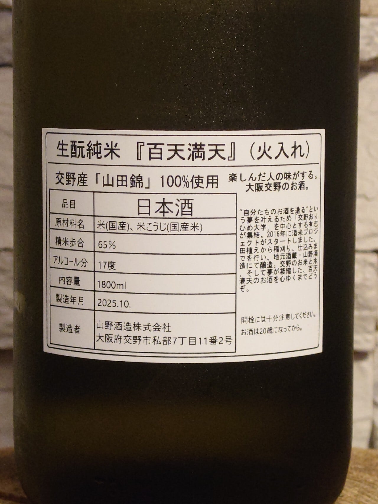 片野桜 百天満天 生酛 純米 R6BY 1.8L