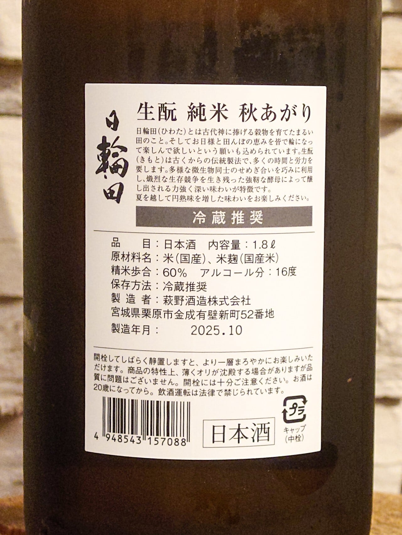 日輪田 いちょうラベル 生酛 純米 R6BY 1.8L