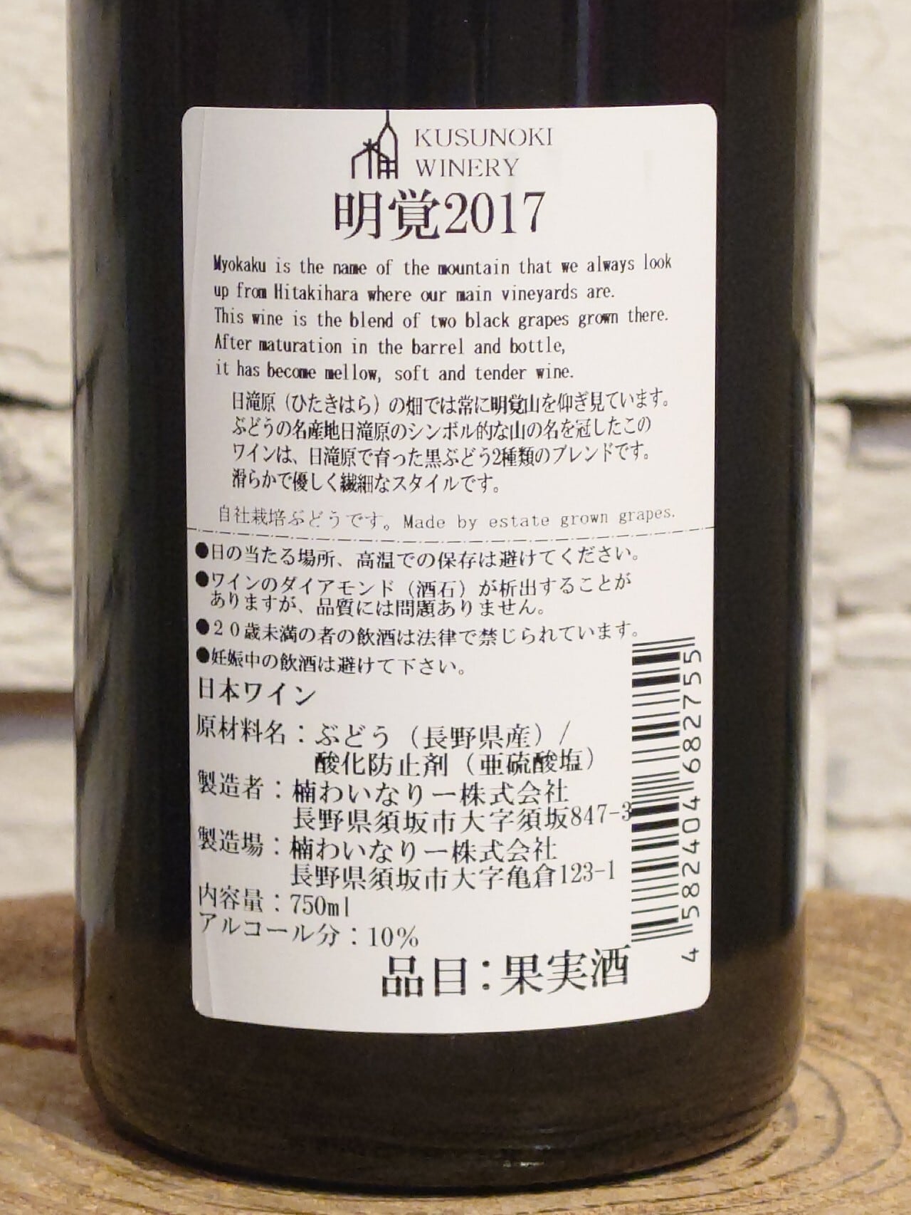 楠わいなりー 明覚(みょうかく) 2017 750ml