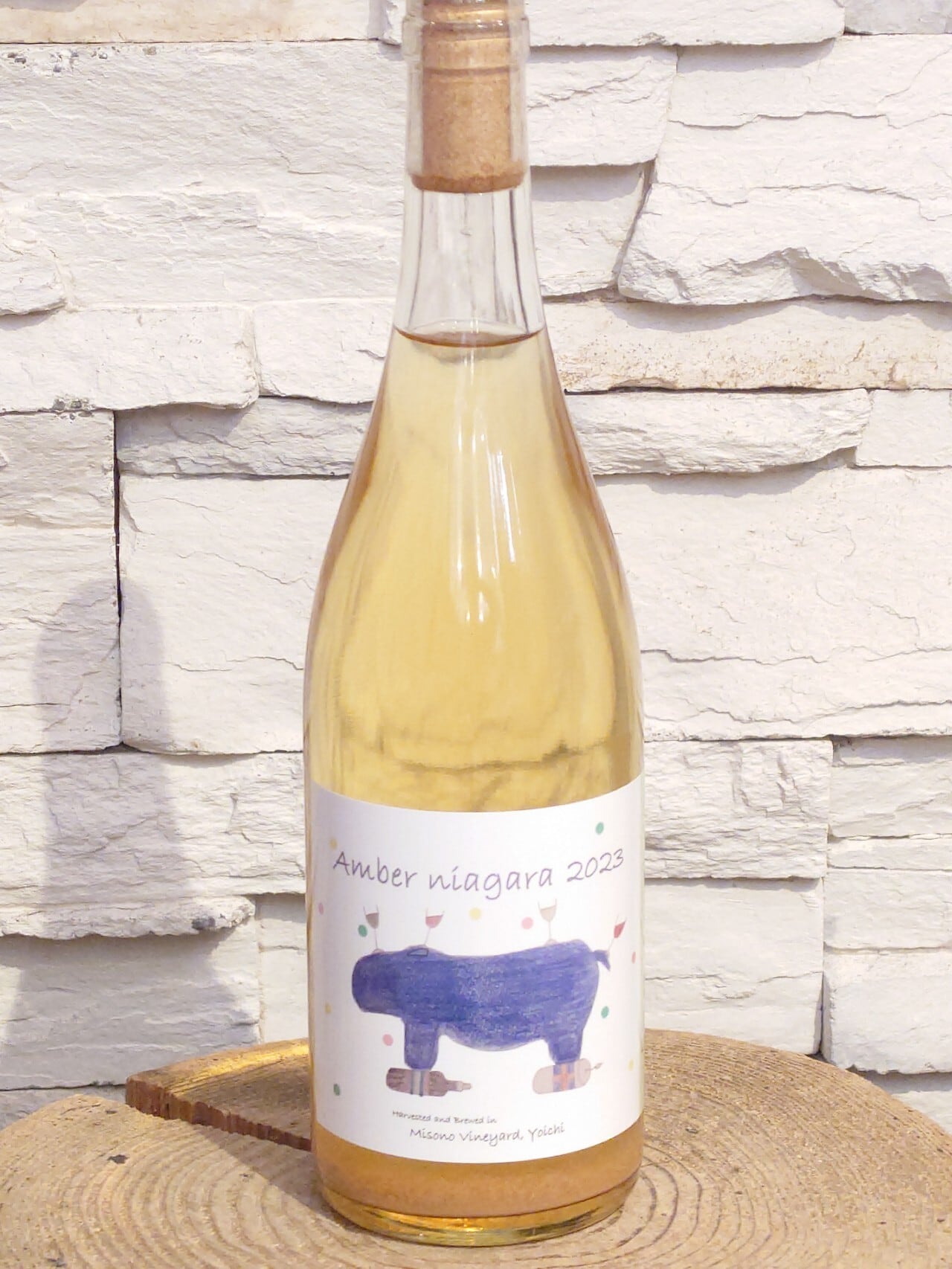 自社農園の樹齢50年のナイアガラを使用し、野生酵母・亜硫酸無添加で醸したワイン。