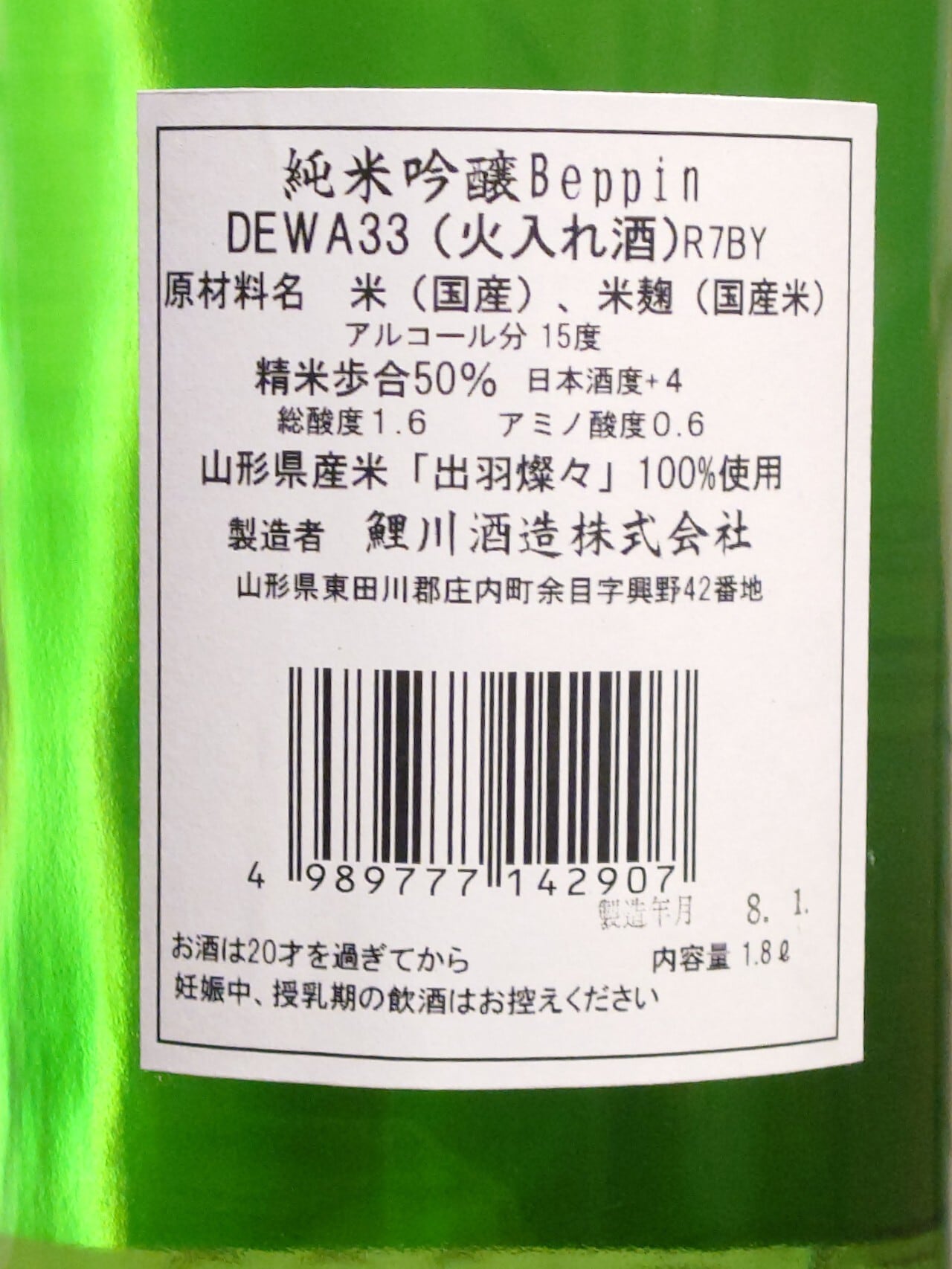 鯉川 Beppin DEWA33 純米吟醸 R7BY 720ml
