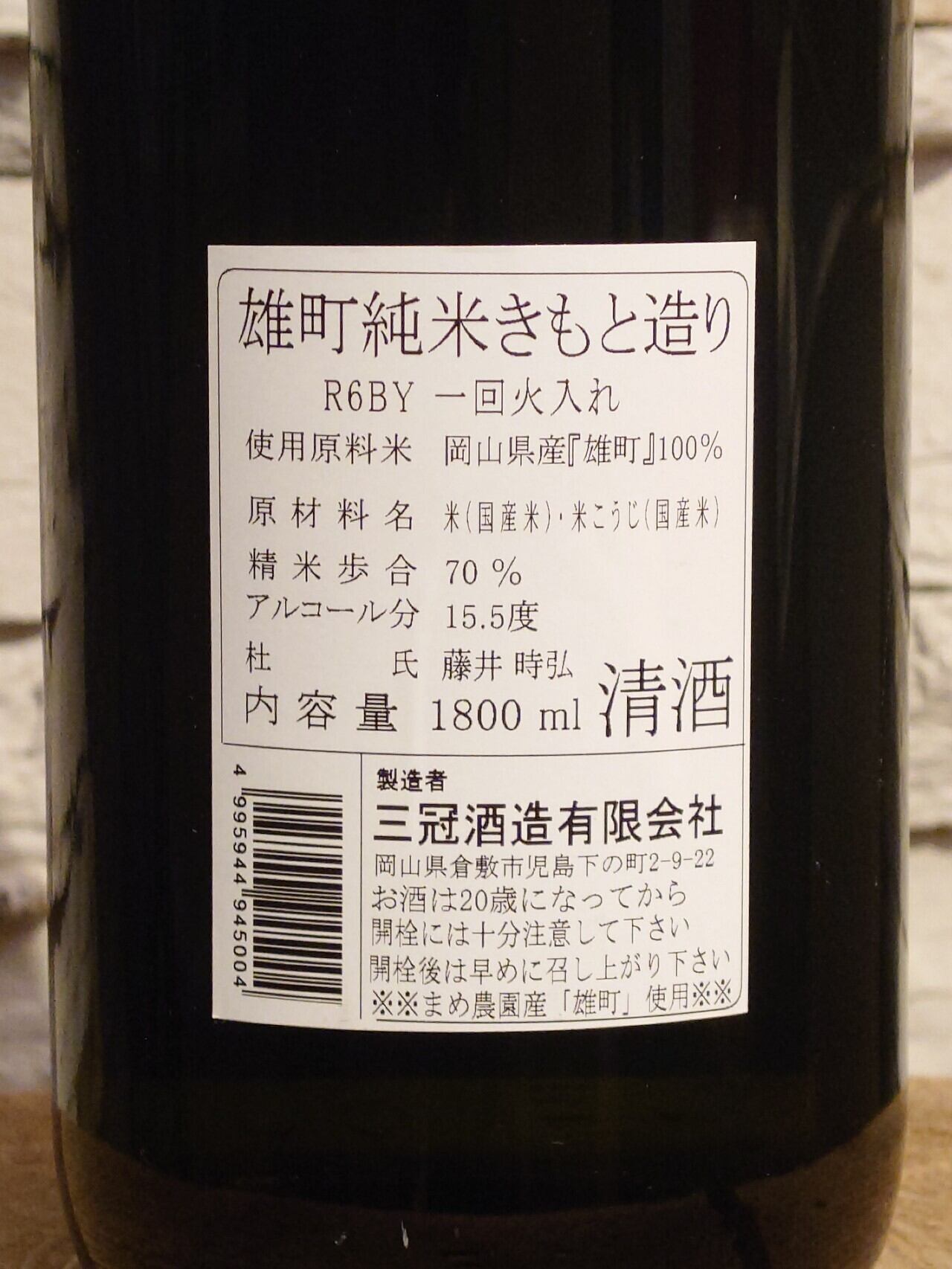 三冠酒造(岡山県)15度 雄町
