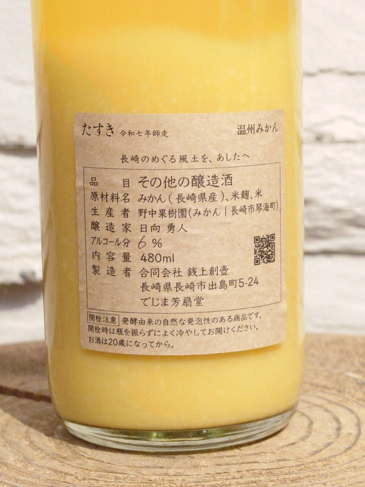 地元・長崎市の野中果樹園産温州みかんを使用したどぶろく。