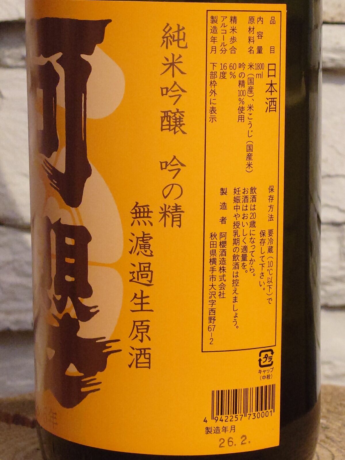 阿櫻酒造(秋田県) 16度 吟の精