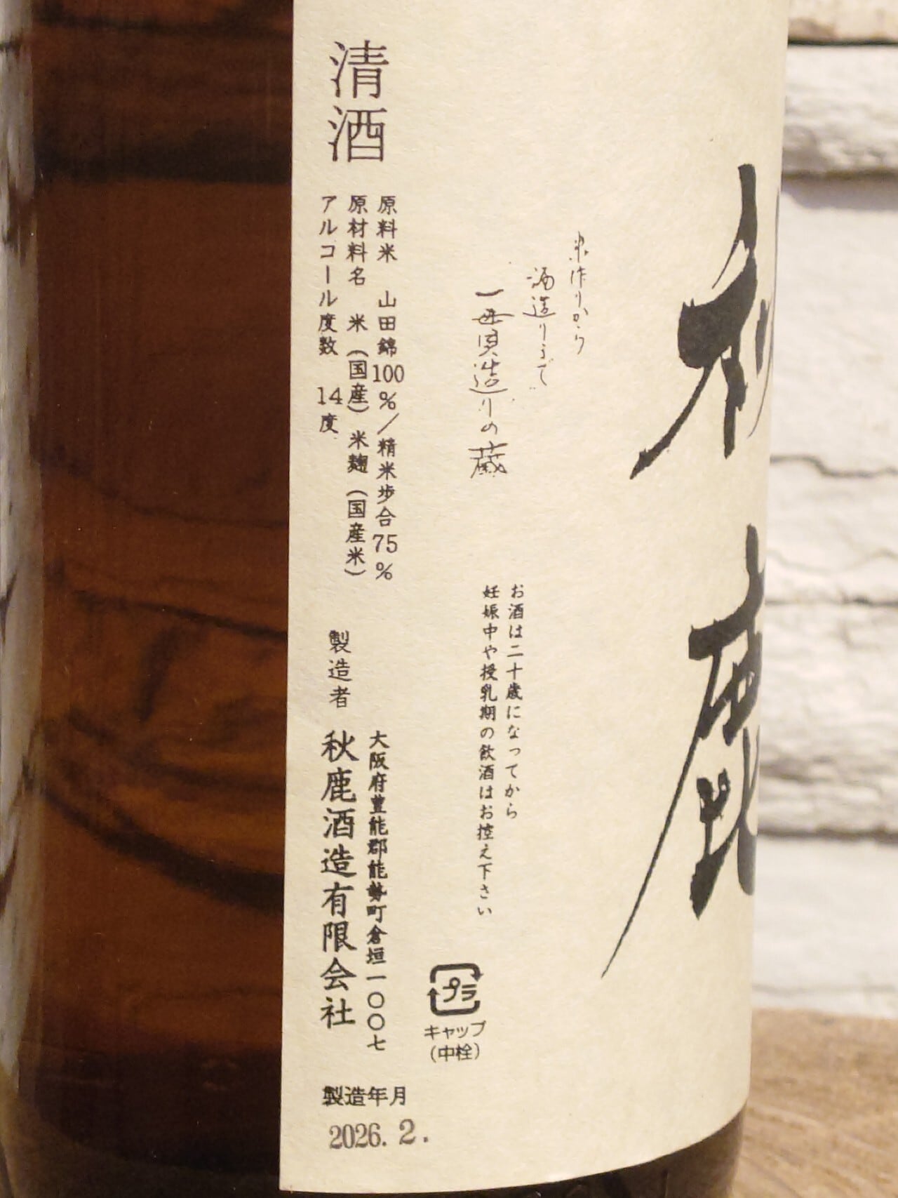 秋鹿らしい米の旨みと酸を感じさせる純米酒です。