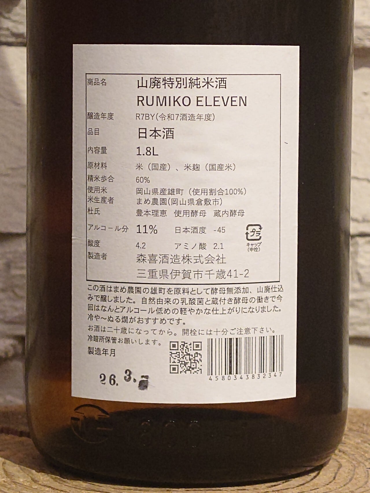 森喜酒造場(三重県) 11度 雄町