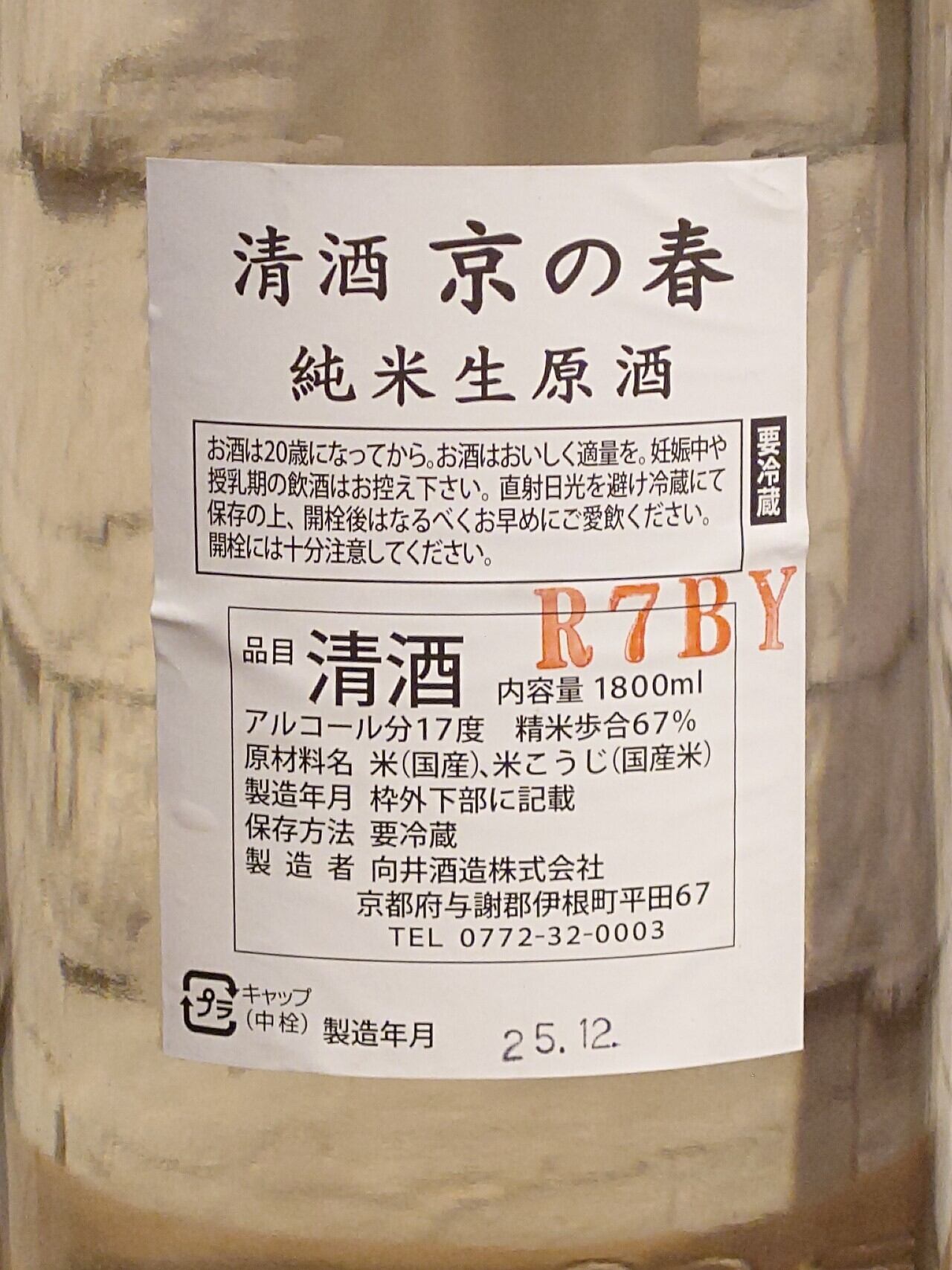 京の春 純米 生原酒 京のかがやき R7BY 1.8L