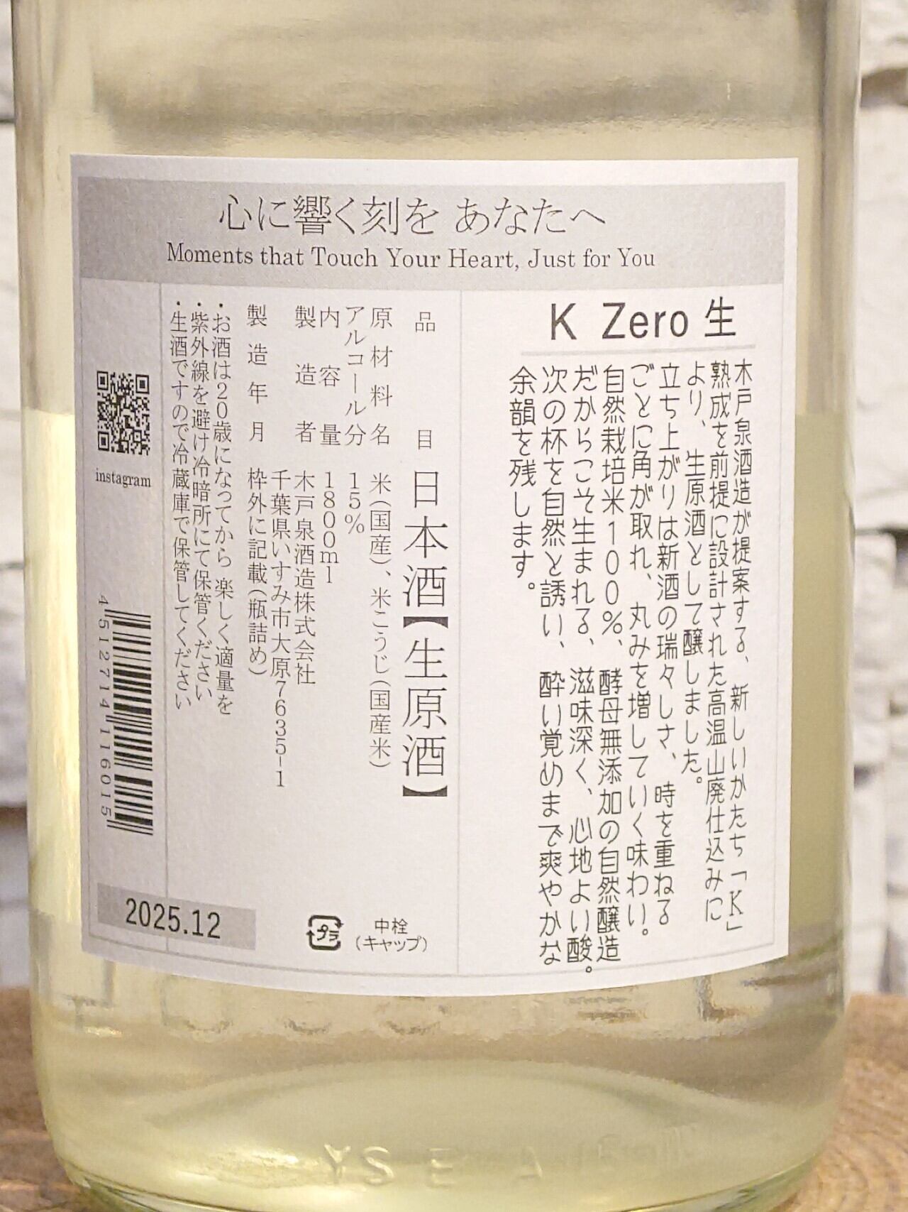 木戸泉 K Zero 生原酒 R7BY 1.8L