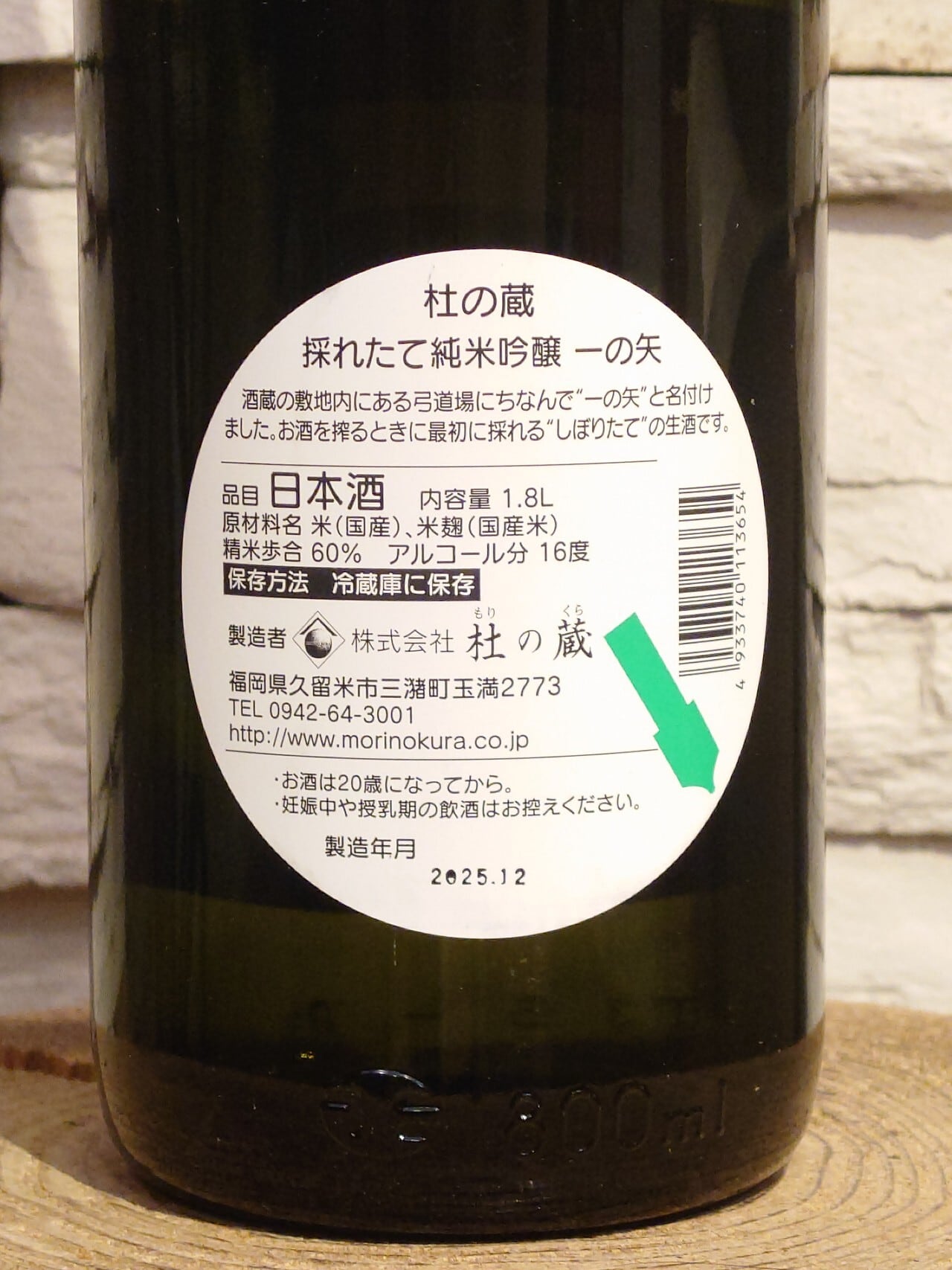 杜の蔵 一の矢 純米吟醸 R7BY 1.8L